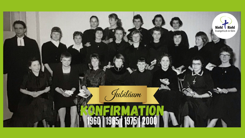 Herzlich laden wir ehemalige Konfirmandinnen und Konfirmanden der Jahre 1960 (eiserne Konfirmation), 1965 (diamantene Konfirmation), 1975 (goldene Konfirmation) und 2000 (silberne Konfirmation) zu ihrem Konfirmationsjubiläum ein.